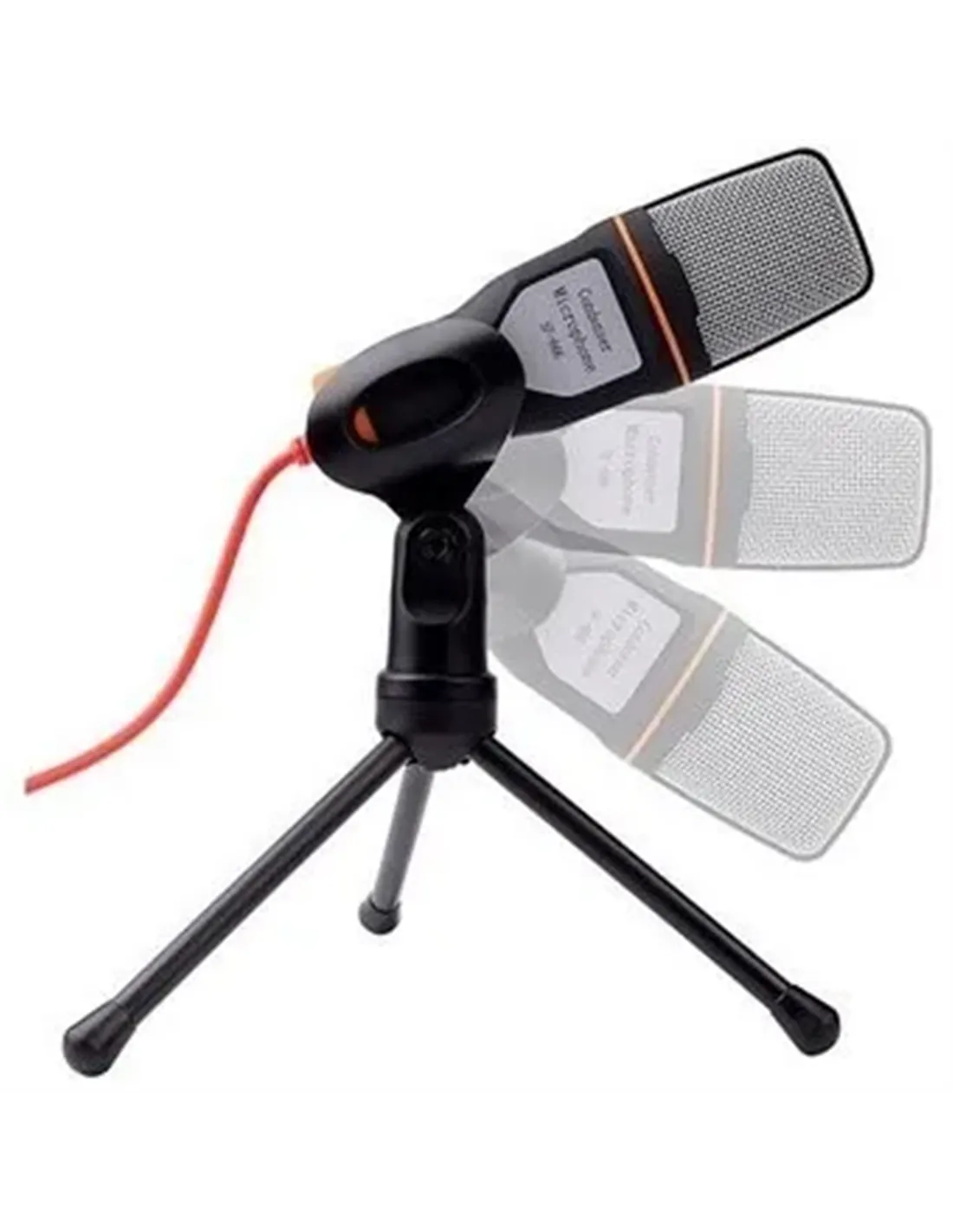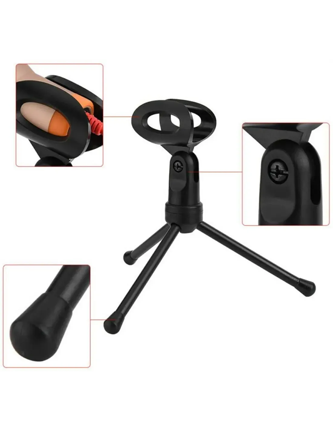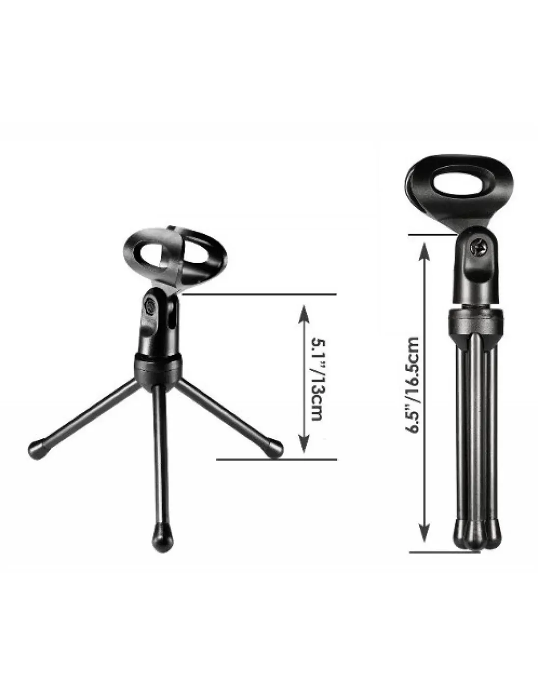 Viene con un soporte de trípode que permite ajustar el ángulo del micrófono.