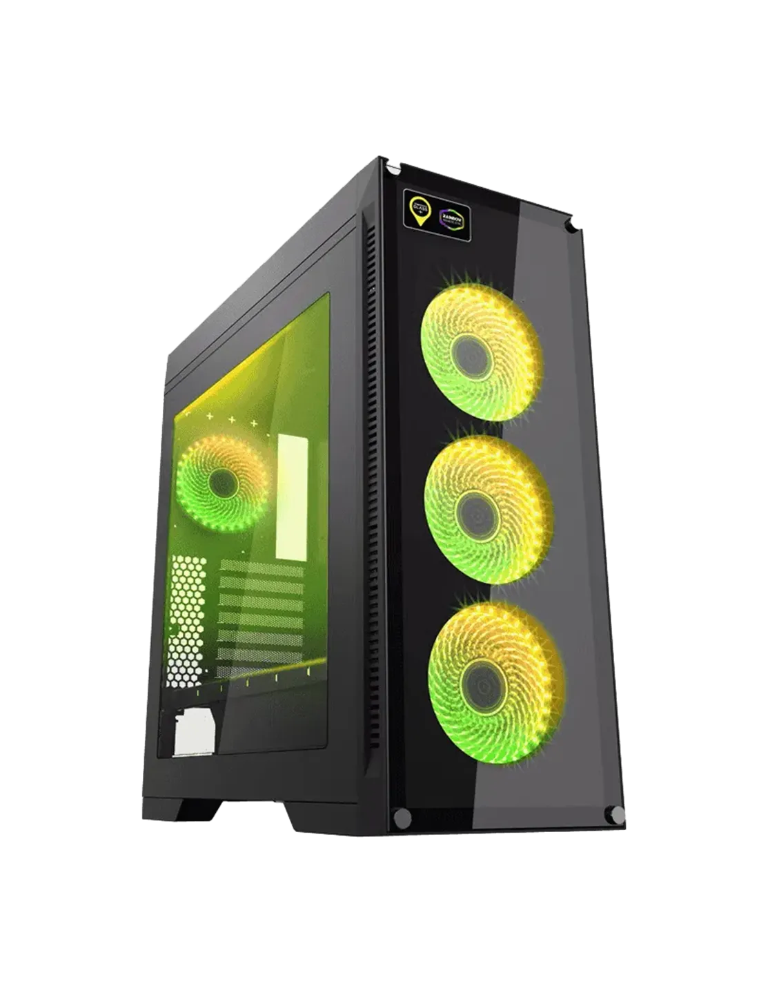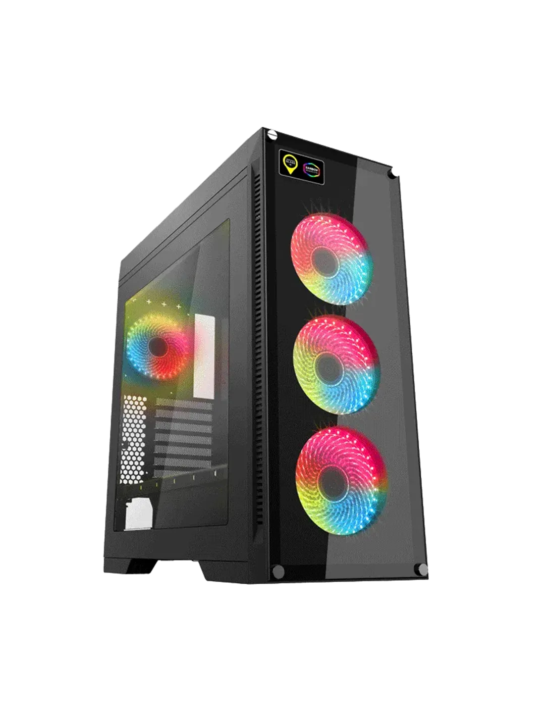 Un nuevo chasis de torre ATX con un diseño simple y clásico que está hecho de panel frontal de vidrio templado. 4 ventiladores Rainbow de 120 mm con control remoto incluidos hacen del Black M911 una solución ideal para los entusiastas de los juegos y una excelente solución de enfriamiento para ayudar a mantener baja la temperatura de la computadora.