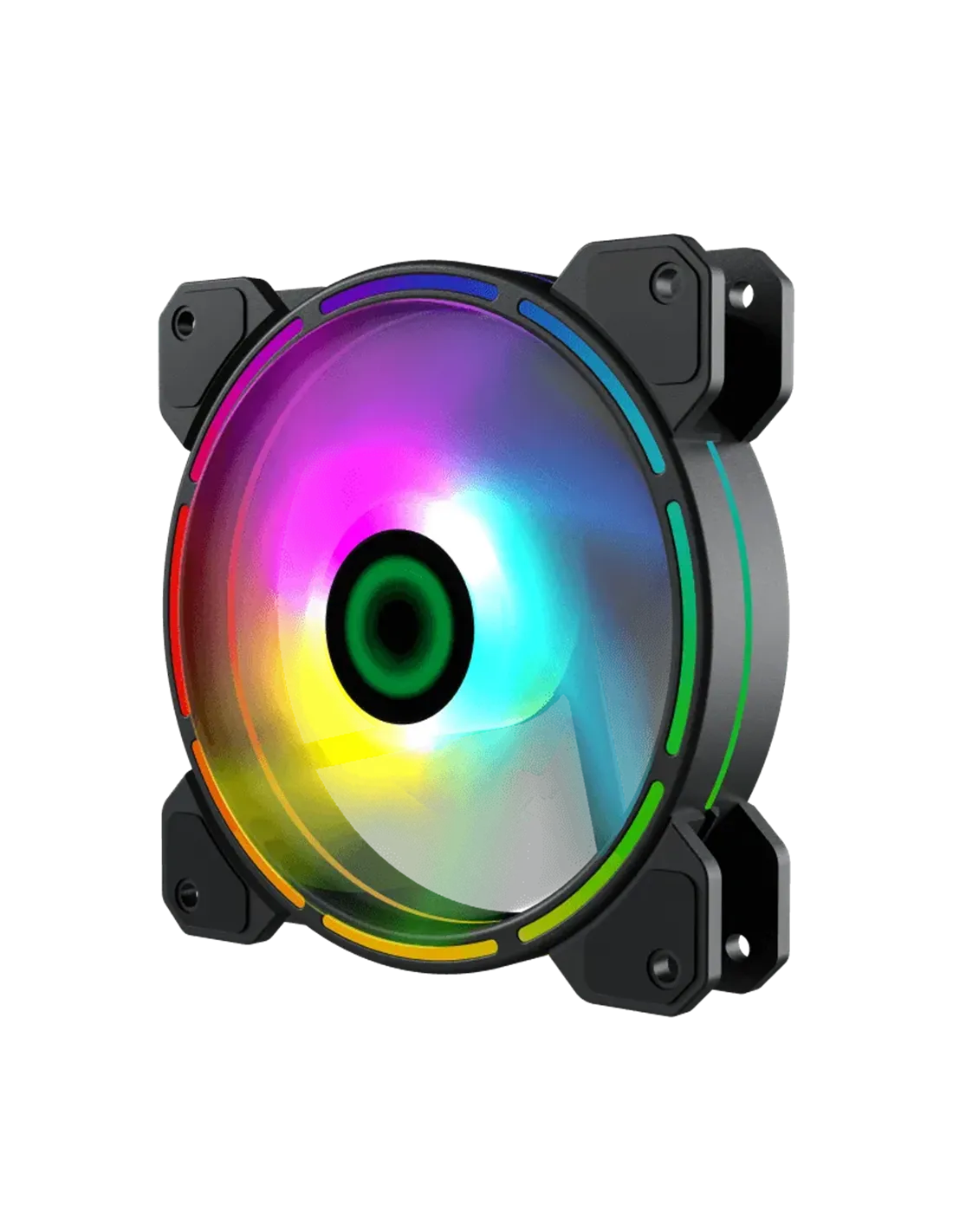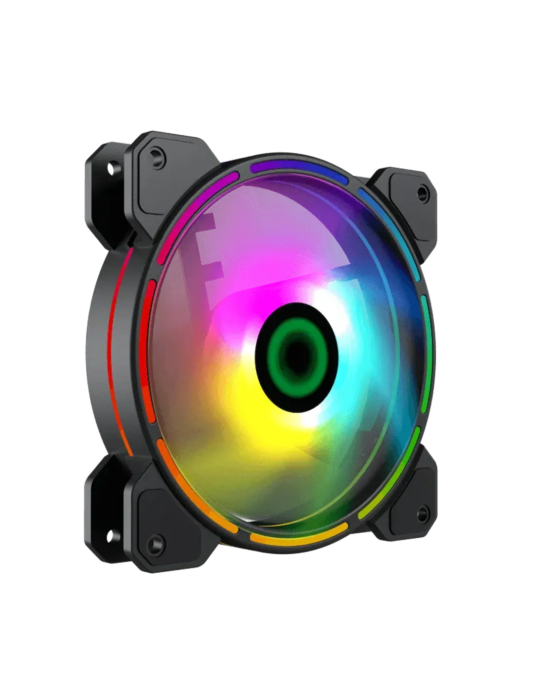 Nuevo 2020 GameMax FN-12RAINBOW-D se enorgullece de presentar el ventilador GameMax FN-12RAINBOW-D Rainbow de doble anillo de 12 cm, es un ventilador silencioso con cojinete hidráulico que permite un funcionamiento silencioso durante el uso con un nivel de ruido de aprox. 25dB (A), viene con un encabezado de 3 pines direccionable de 5 V y el ventilador funciona con un conector normal de 3 pines. Viene con varios efectos de iluminación cuando se sincroniza usando un conector AURA, creando una apariencia única. La junta de goma aumenta la reducción de la vibración del movimiento de los ventiladores.