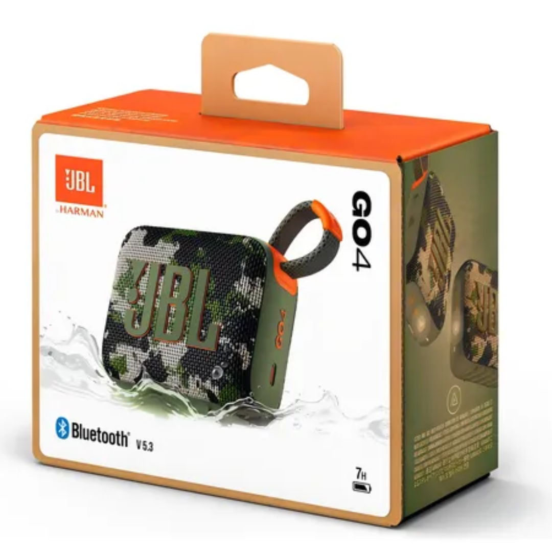 Parlante Bluetooth JBL GO 4 Camuflado, a prueba de agua.