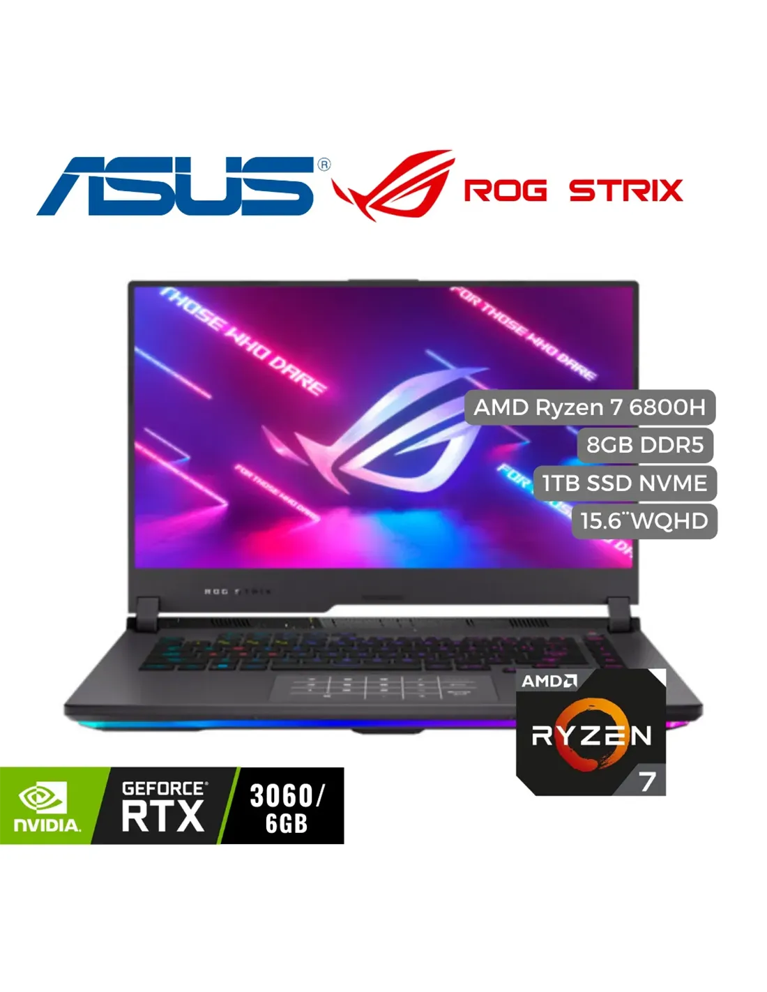 Portatil Asus ROG STRIX Ryzen 7 6800H, 1TB PCIe SSD, 8GB DDR5, 15.6" WQHD, RTX 3060 6GB