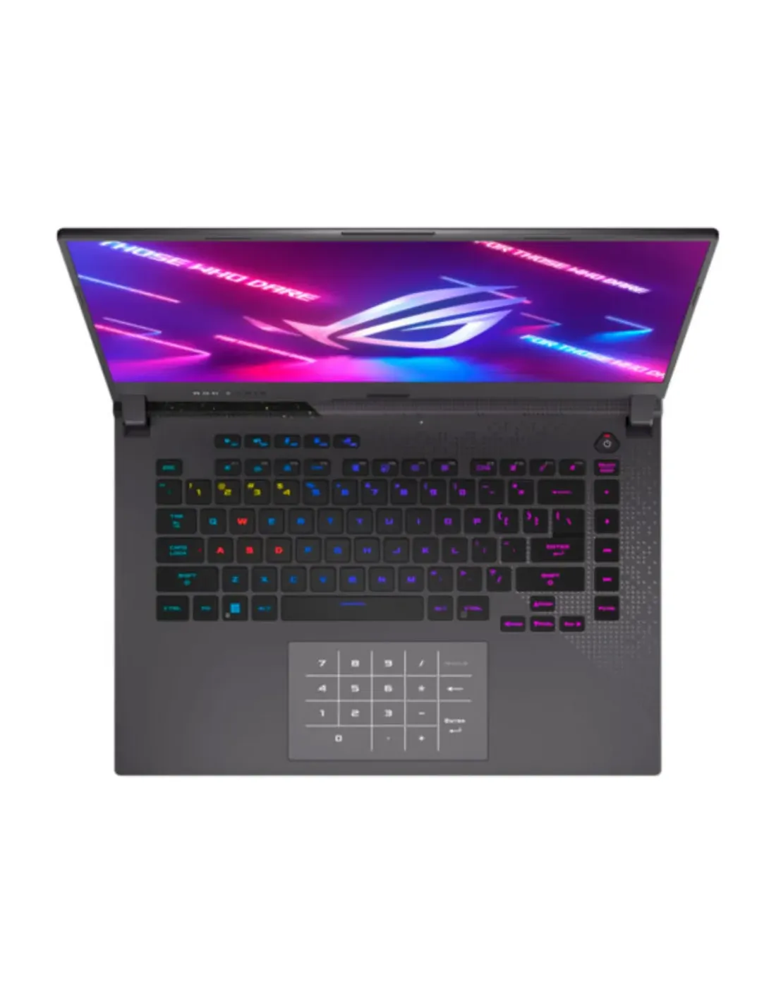 Sutiles recortes e iconos adornan el exterior y la parte inferior del portátil y le dan un look inconfundible desde cualquier ángulo. Ilumina tu entorno con acentos Aura Sync que brillan en el logotipo metálico de ROG, el teclado retroiluminado y la barra de luz envolvente.