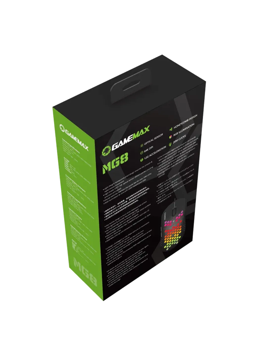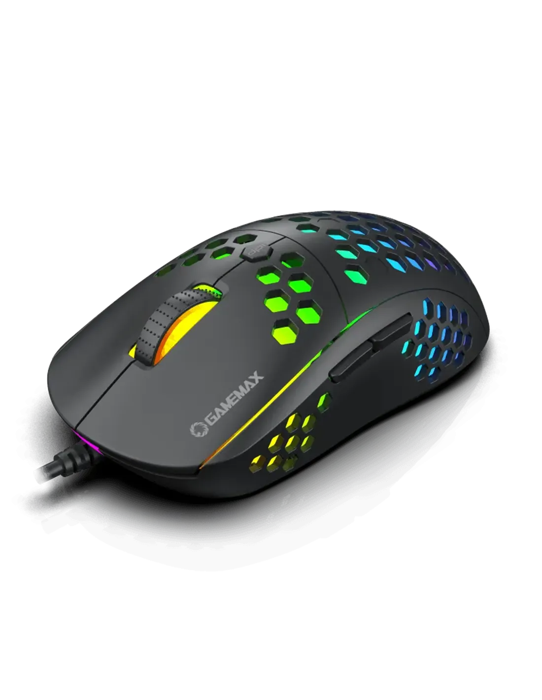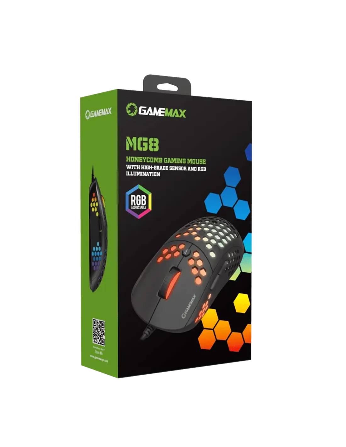 Mouse para juegos GameMax MG8 con carcasa de nido de abeja ligera, cable ultraligero Ultraweave, sensor óptico de 6400 DPI