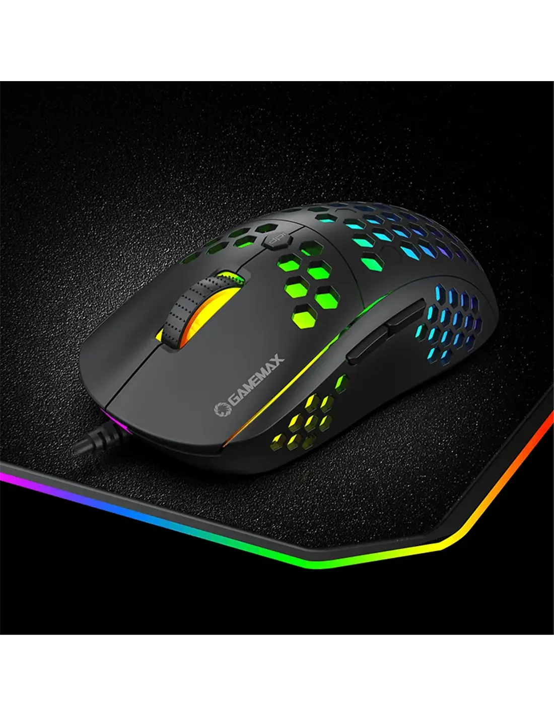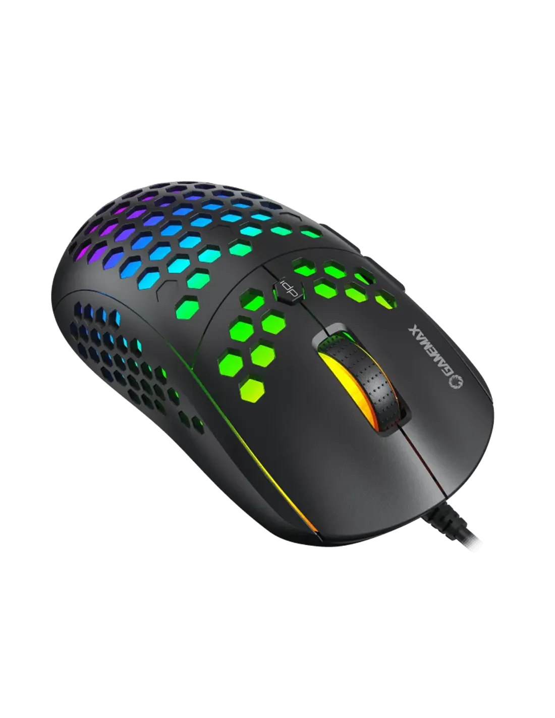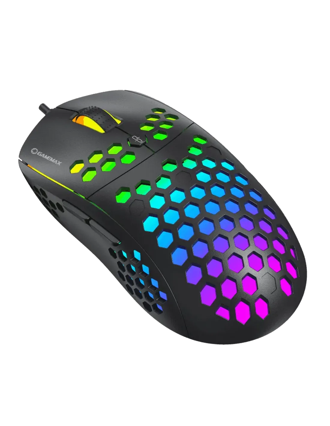 Mouse para juegos GameMax MG8 con carcasa de nido de abeja ligera, cable ultraligero Ultraweave, sensor óptico de 6400 DPI